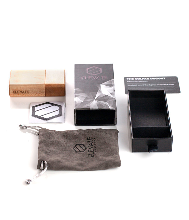 The Colfax stands out as a luxury version of the traditional dugout and is perfect for the refined smoker on-the-go. Its sleek design is crafted for quality and is built to last. The all-natural "710" finish comes in rich, dark walnut or a dense, light-colored hard maple wood. This pocket-sized beauty can hold up to two grams of ground herb, and the glass bat packs a punch!